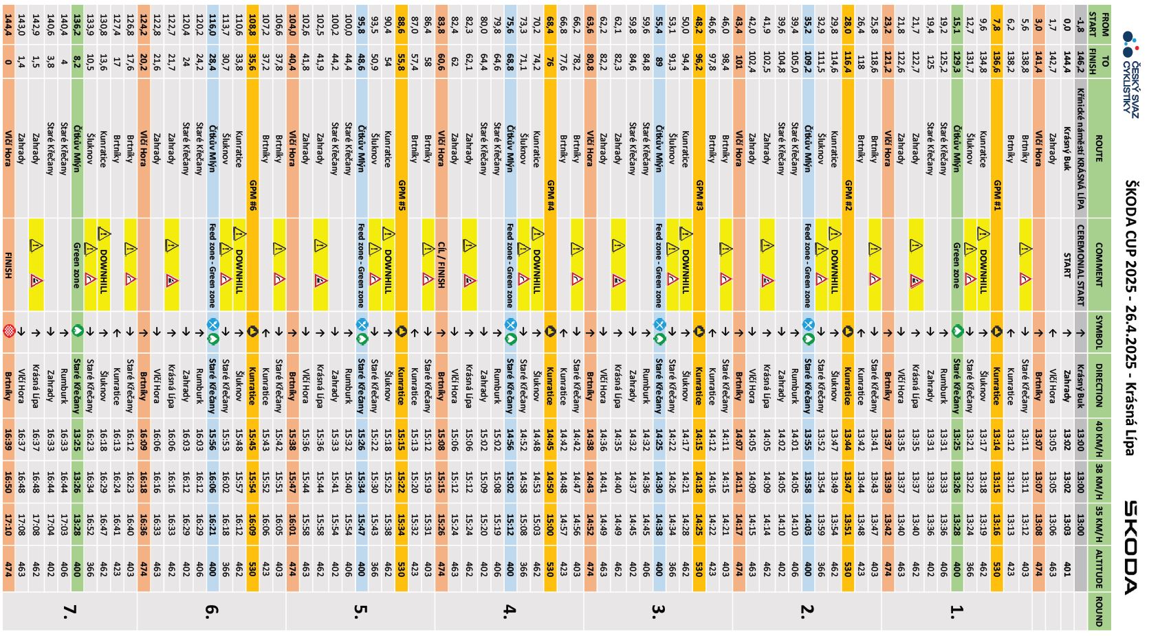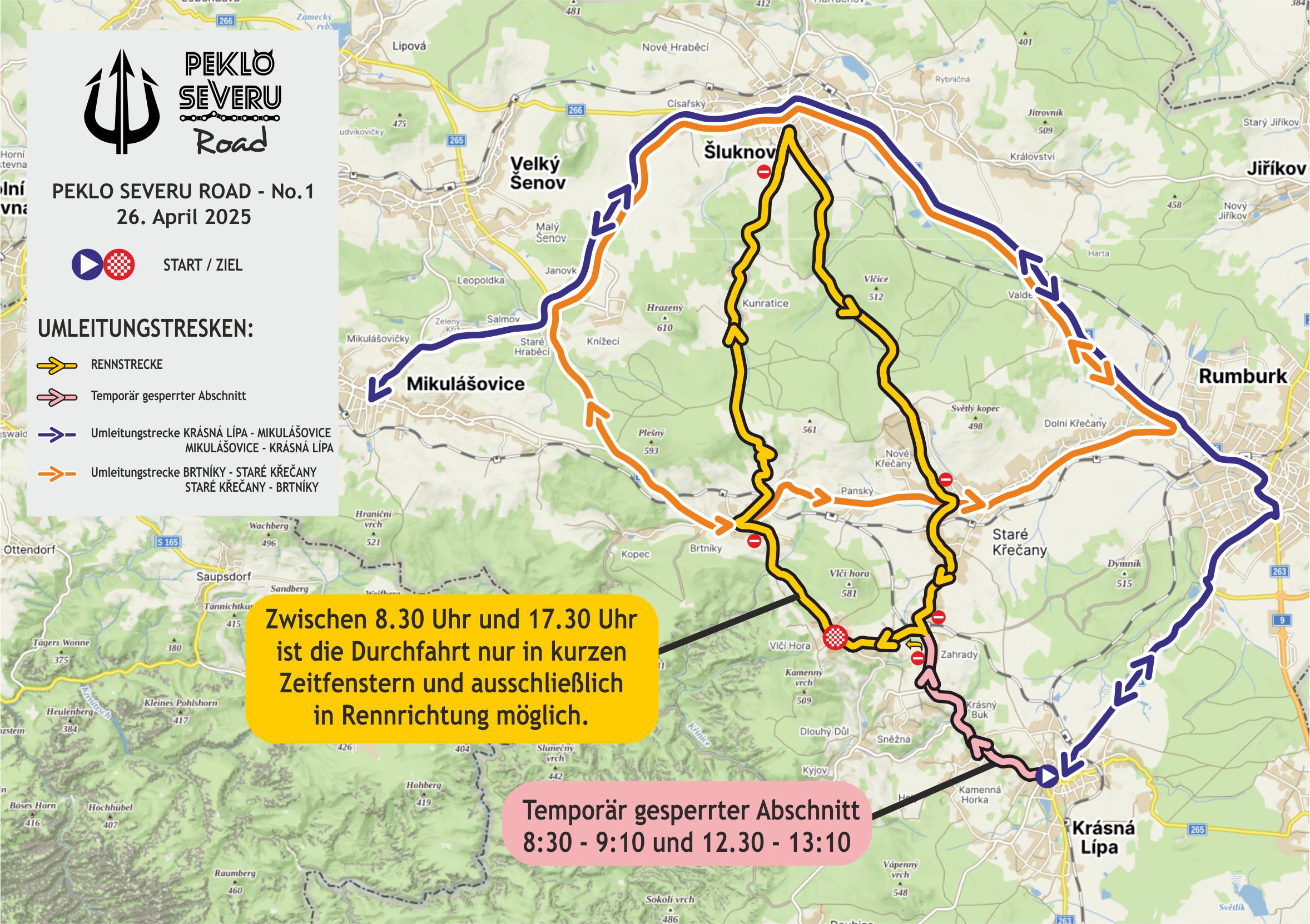 | Brtníky - Staré Křečany | Nach dem Rennen von Brtníky - Staré Křečany (an den Kreuzungen in Rennrichtung) | 8:30 - 17:30 |