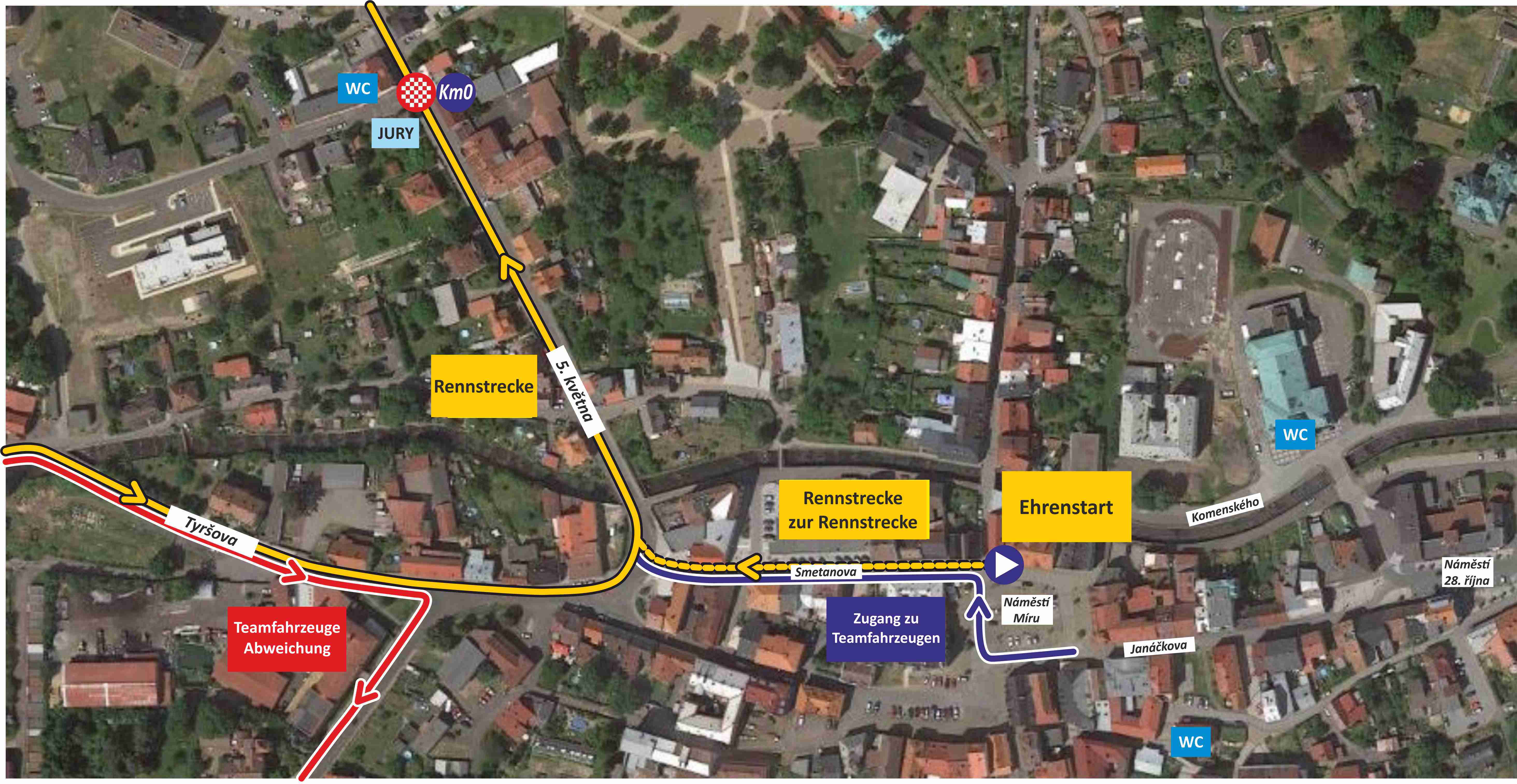 | Česká Kamenice - Jánská - Srbská Kamenice - Všemily - Jetřichovice | Česká Kamenice - Děčín - Hřensko - Jetřichovice ; Weiter nach Všemily und Srbská Kamenice entlang der Rennstrecke nach dem Rennen | 8:30 - 17:30 |