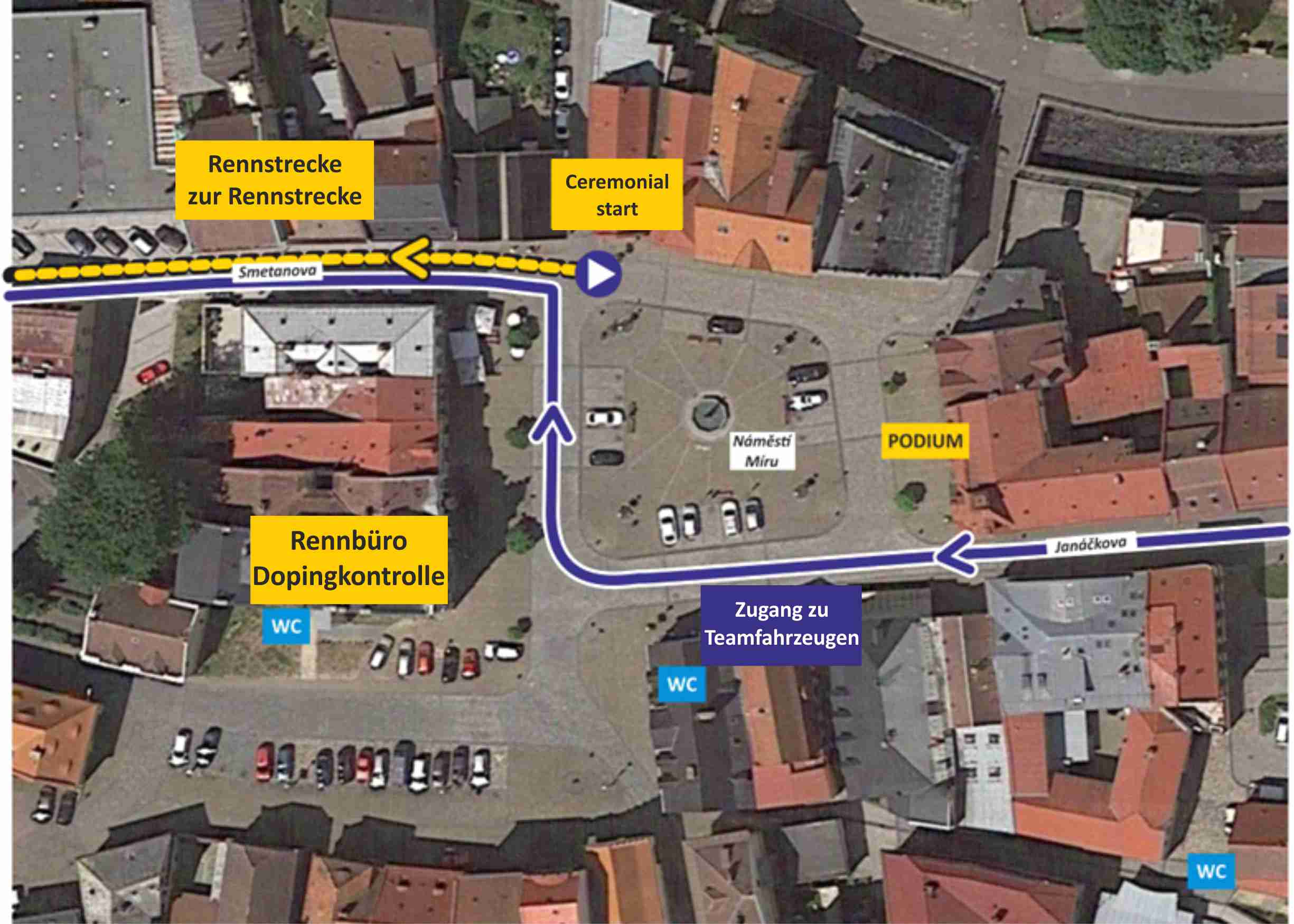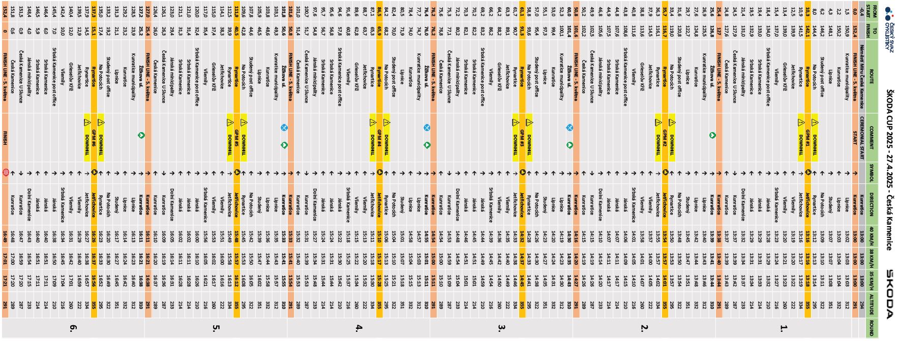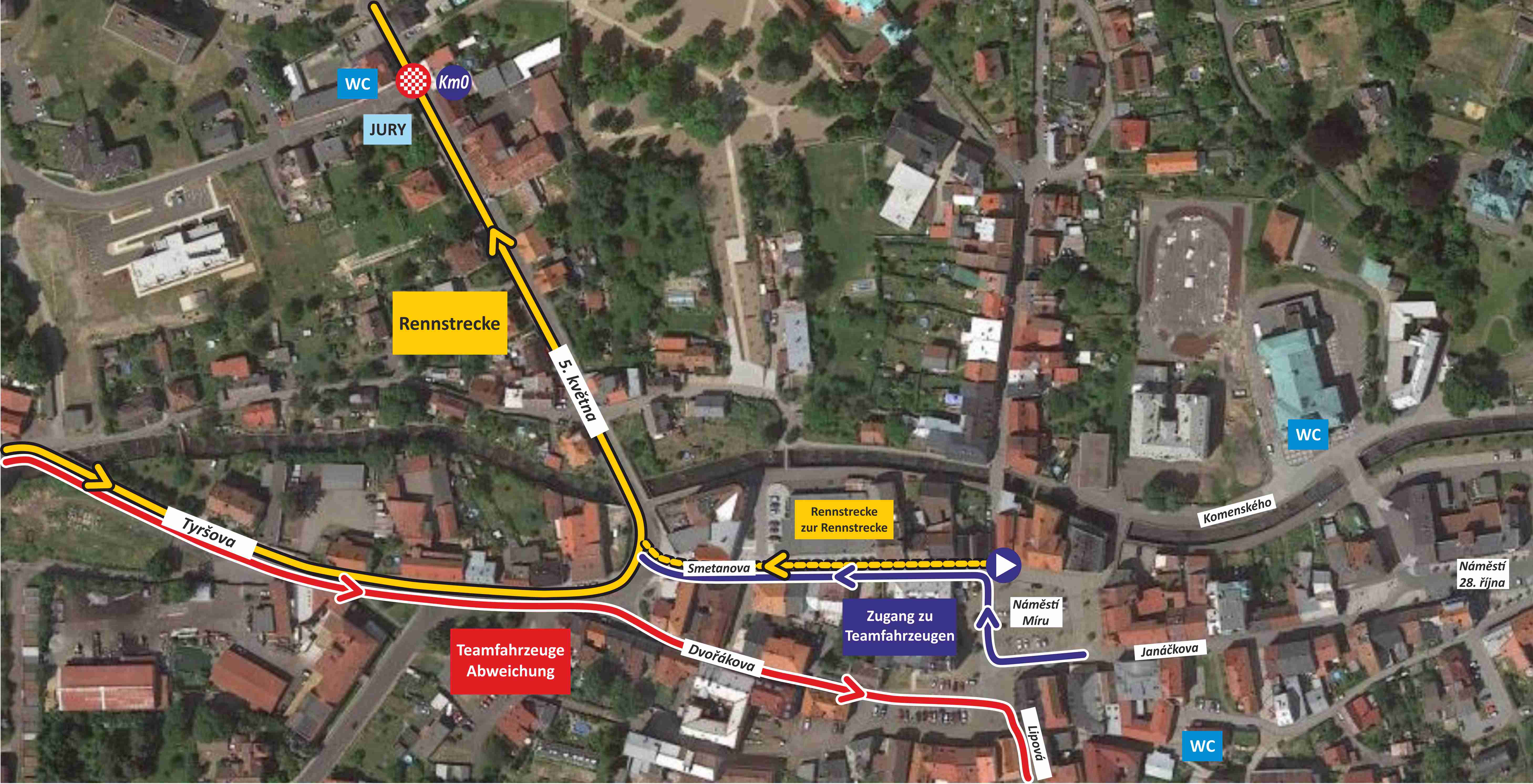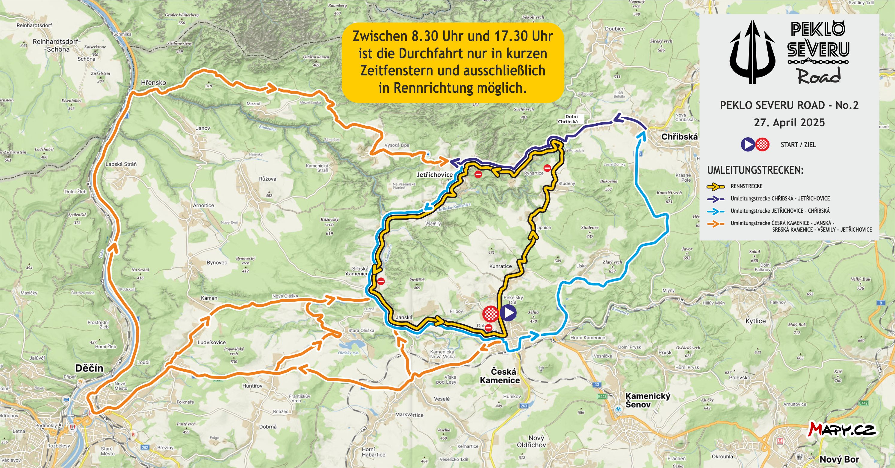| Česká Kamenice - Jánská - Srbská Kamenice - Všemily - Jetřichovice | Česká Kamenice - Děčín - Hřensko - Jetřichovice ; Weiter nach Všemily und Srbská Kamenice entlang der Rennstrecke nach dem Rennen | 8:30 - 17:30 |