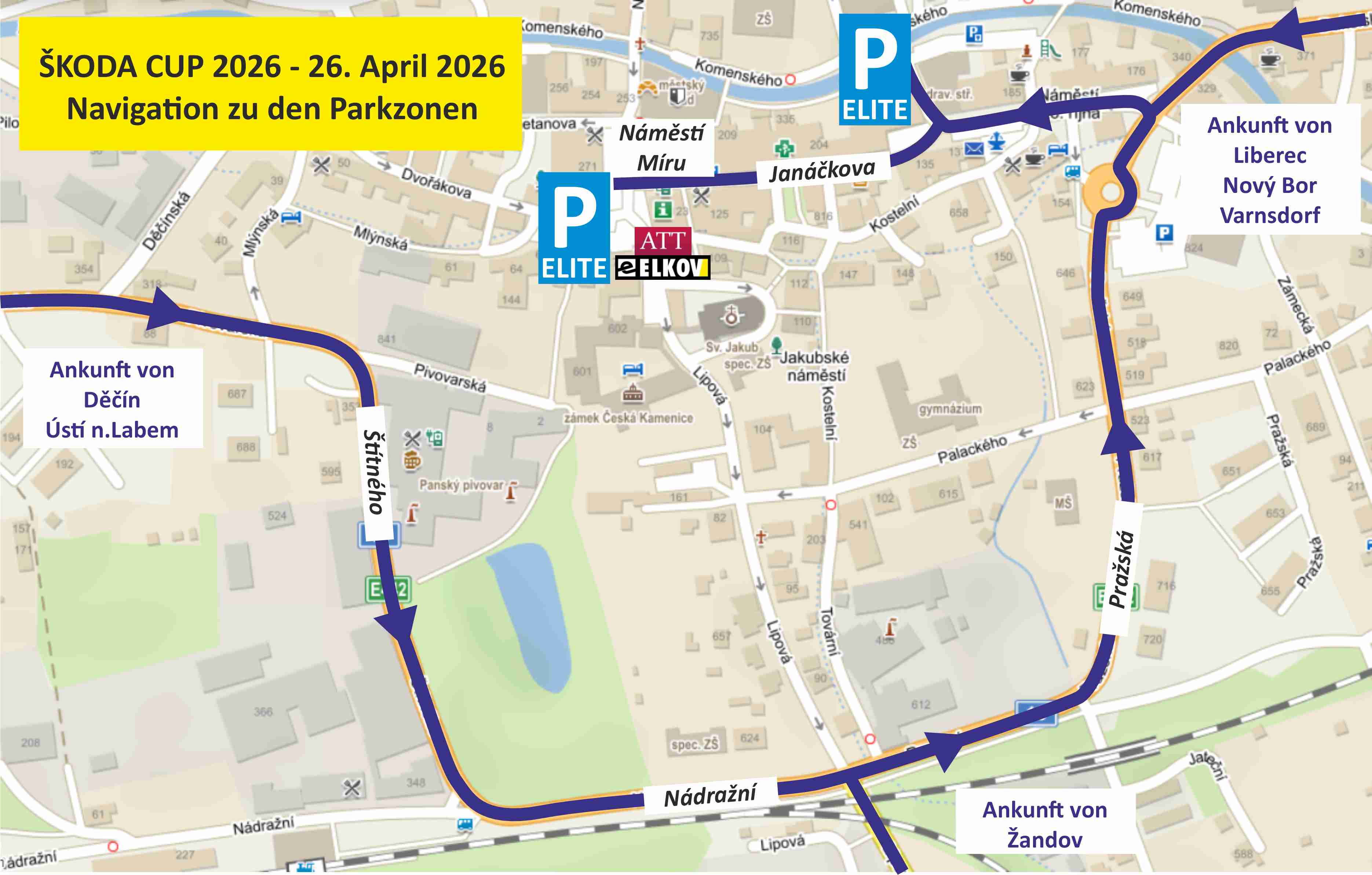 | Česká Kamenice - Jánská - Srbská Kamenice - Všemily - Jetřichovice | Česká Kamenice - Děčín - Hřensko - Jetřichovice ; Weiter nach Všemily und Srbská Kamenice entlang der Rennstrecke nach dem Rennen | 10:30 - 15:30 |