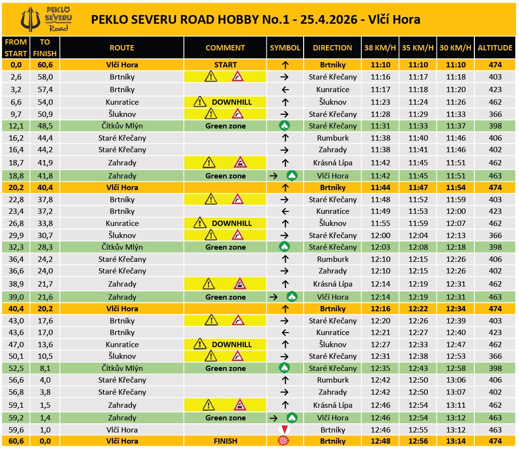 Race route: Vlčí Hora – Brtníky – Kunratice – Šluknov – Staré Křečany – Zahrady – Vlčí Hora