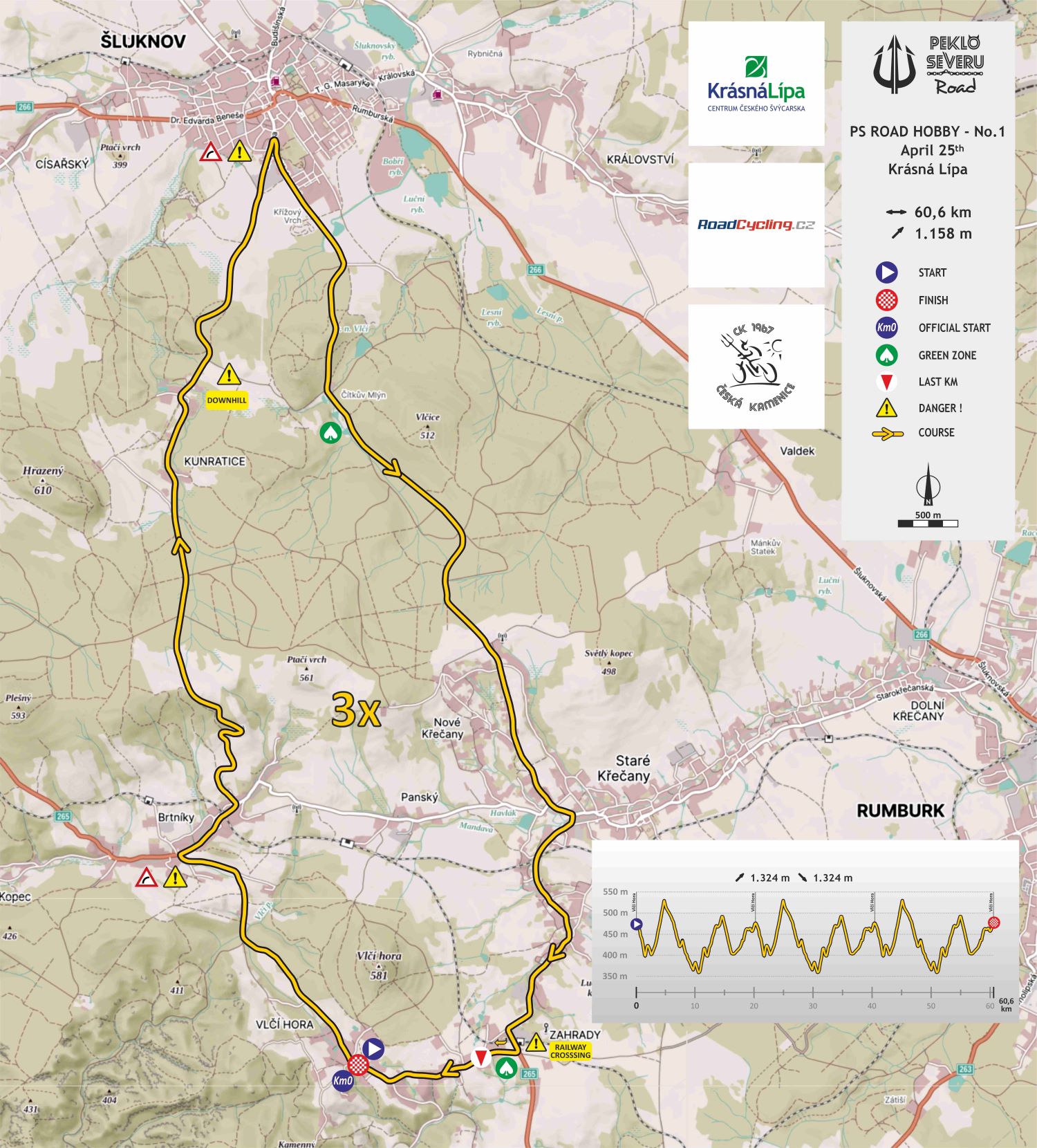 Race route: Vlčí Hora – Brtníky – Kunratice – Šluknov – Staré Křečany – Zahrady – Vlčí Hora