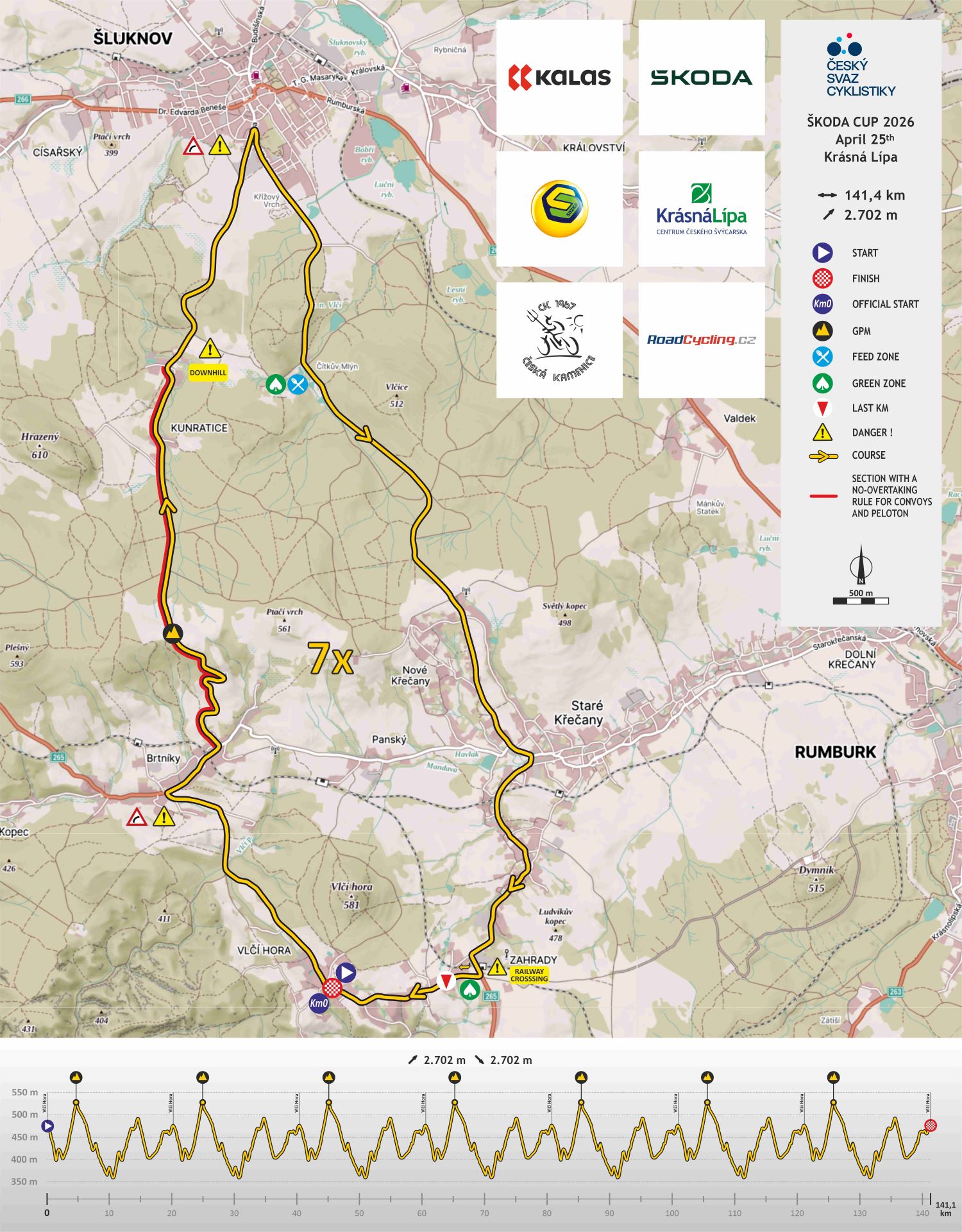Race route: Vlčí Hora – Brtníky – Kunratice – Šluknov – Staré Křečany – Zahrady – Vlčí Hora