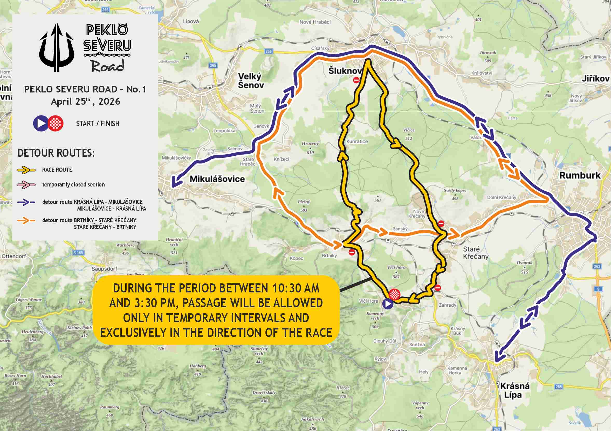 Race route: Vlčí Hora – Brtníky – Kunratice – Šluknov – Staré Křečany – Zahrady – Vlčí Hora