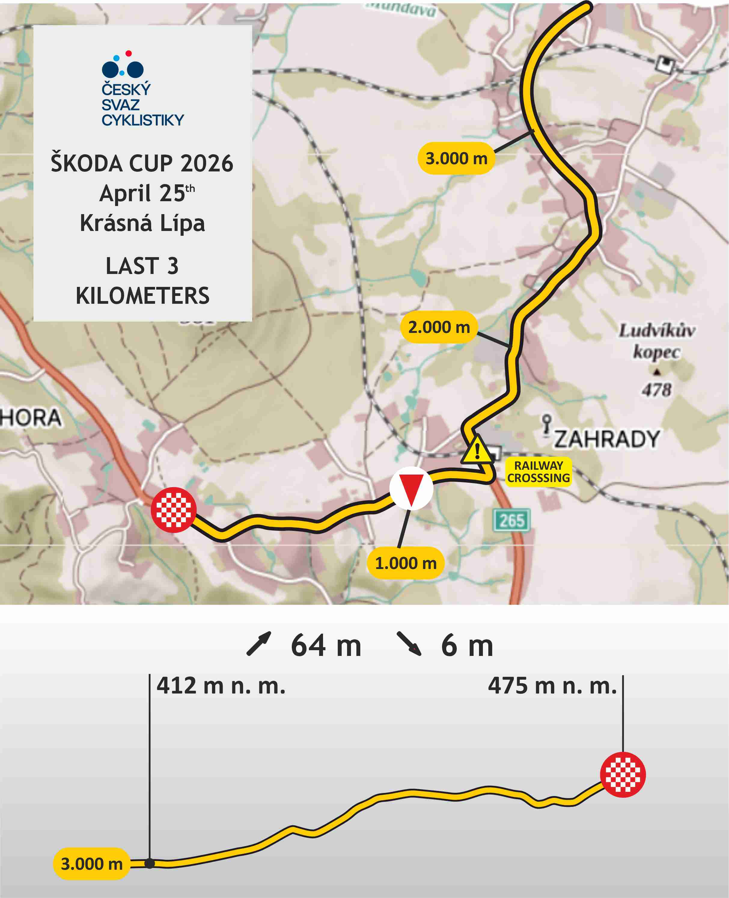 | Brtníky - Staré Křečany | behind the race from Brtníky - Staré Křečany (at the crossroads in the direction of the race) | 10:30 a.m. - 3:30 p.m. |